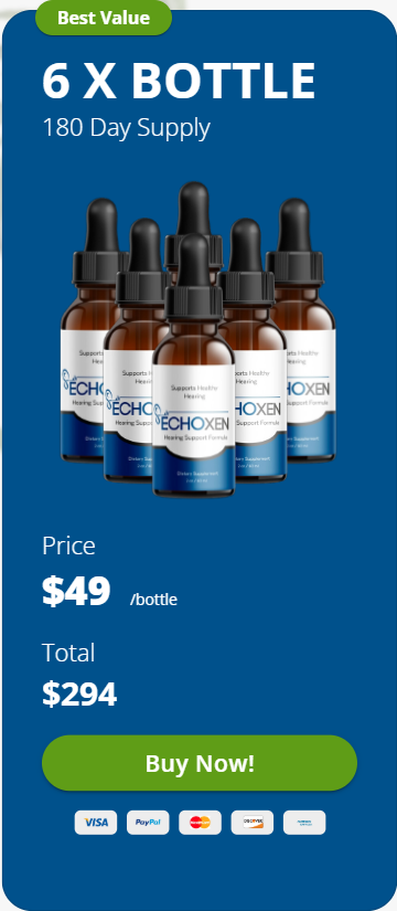 Don’t spend another day living with that awful noise or fearing the decline of your hearing and clarity. Do what I did and take this step for yourself. Click the button below to order EchoXen directly from the official website, with full peace of mind.